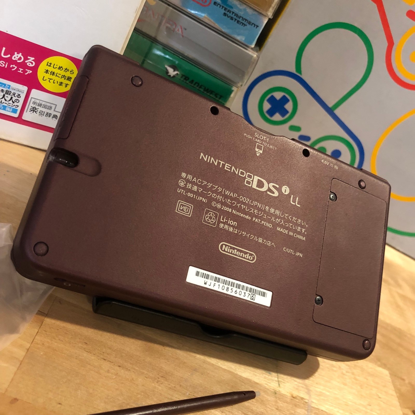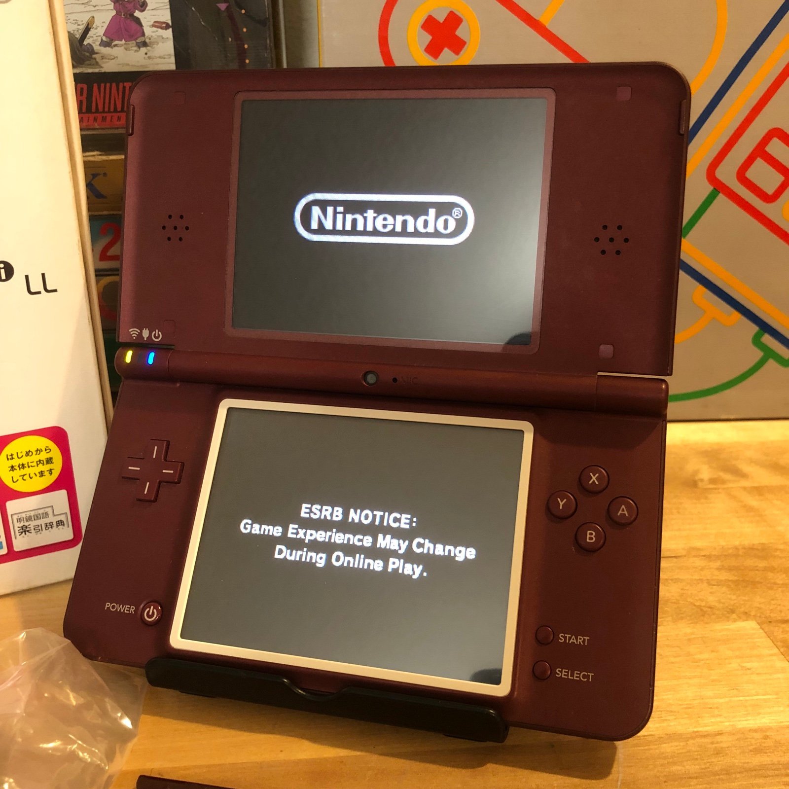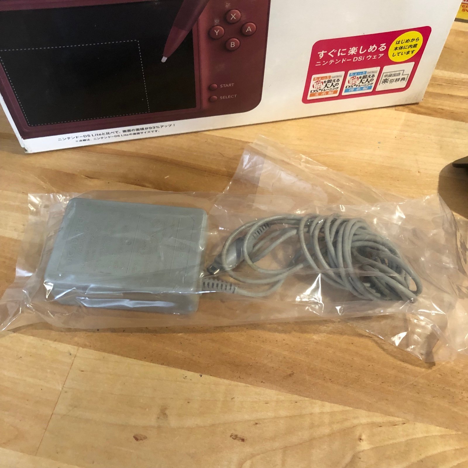 Complete in box Nintendo DSi XL in burgundy with charger. System is tested and works. Factory reset. Ulaunch and language patcher installed for it to work in any language and region. Bottom screen has minor yellowing. Every function is tested and works. Box is JP but system has custom firmware to be US. Screens have some minor flickering occasionally. Ships protected in a large box with plenty of protection. THANK YOU!!!