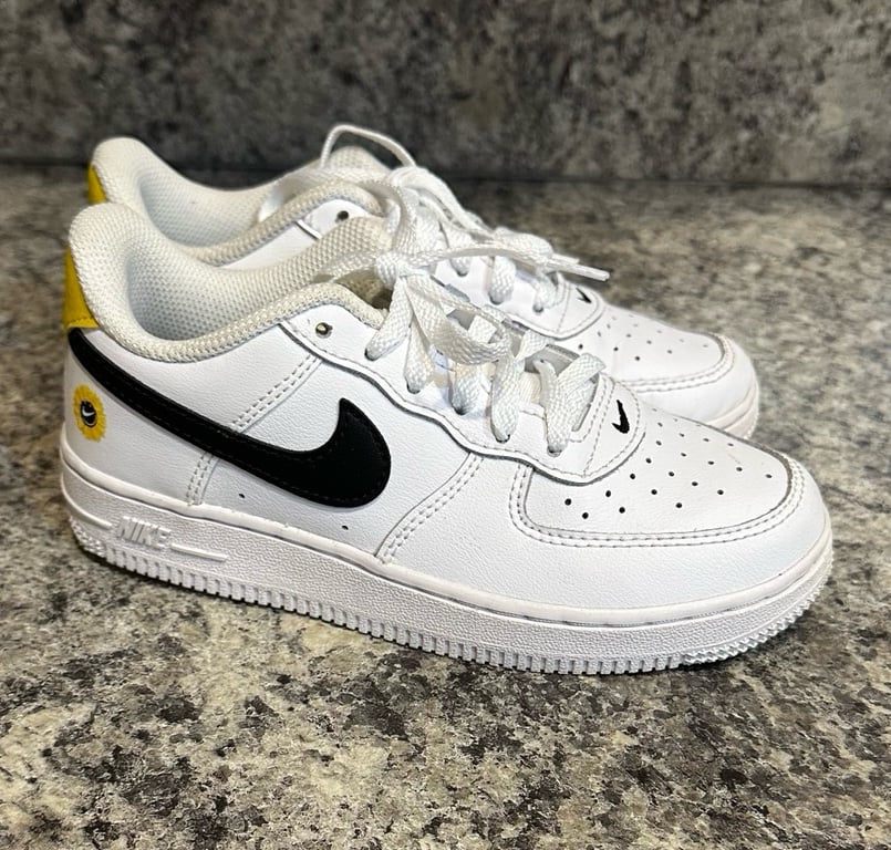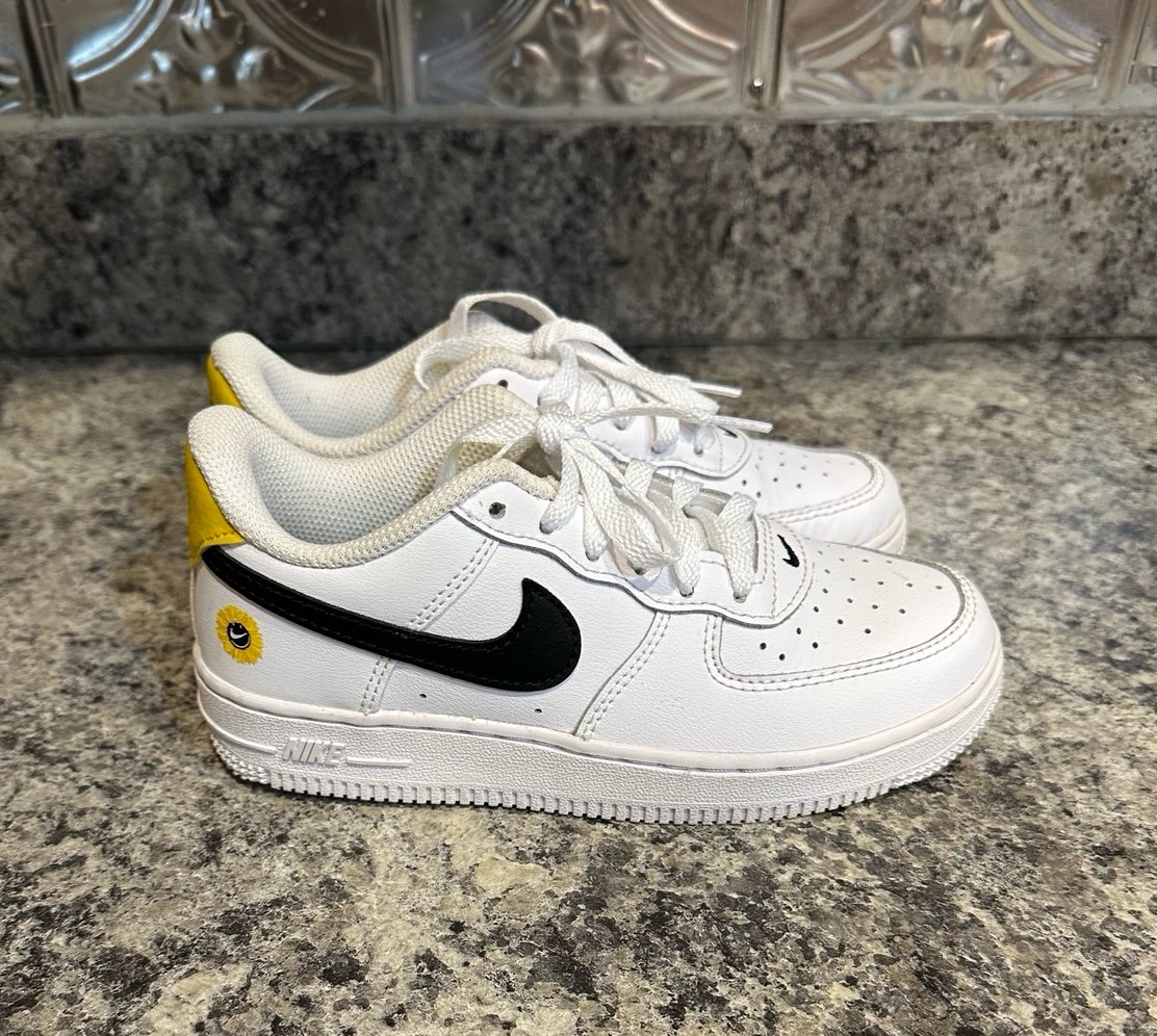 The Nike Air Force 1 LV8 PS “Have A Nike Day” AF1 White Daisy DM4253-100 in Size 13c is a stylish and comfortable pair of sneakers for unisex kids. Featuring a solid white color with daisy accents and Nike logos, these low-top athletic shoes have a lace-up closure and standard shoe width for a secure and adjustable fit. Perfect for activewear or casual occasions, these sneakers also offer comfort and non-slip features, making them ideal for various activities like walking, school, and running. Limited edition and versatile for all seasons, these Nike Air Force 1 sneakers are a fashionable choice for young sneaker enthusiasts.