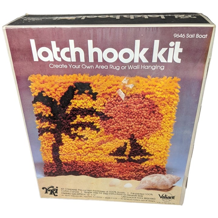 New old stock however please be aware there are remnants of original retail sticker on front. Item is unused and unopened box. Box states Latch Hook Tools are required and not included in box.
