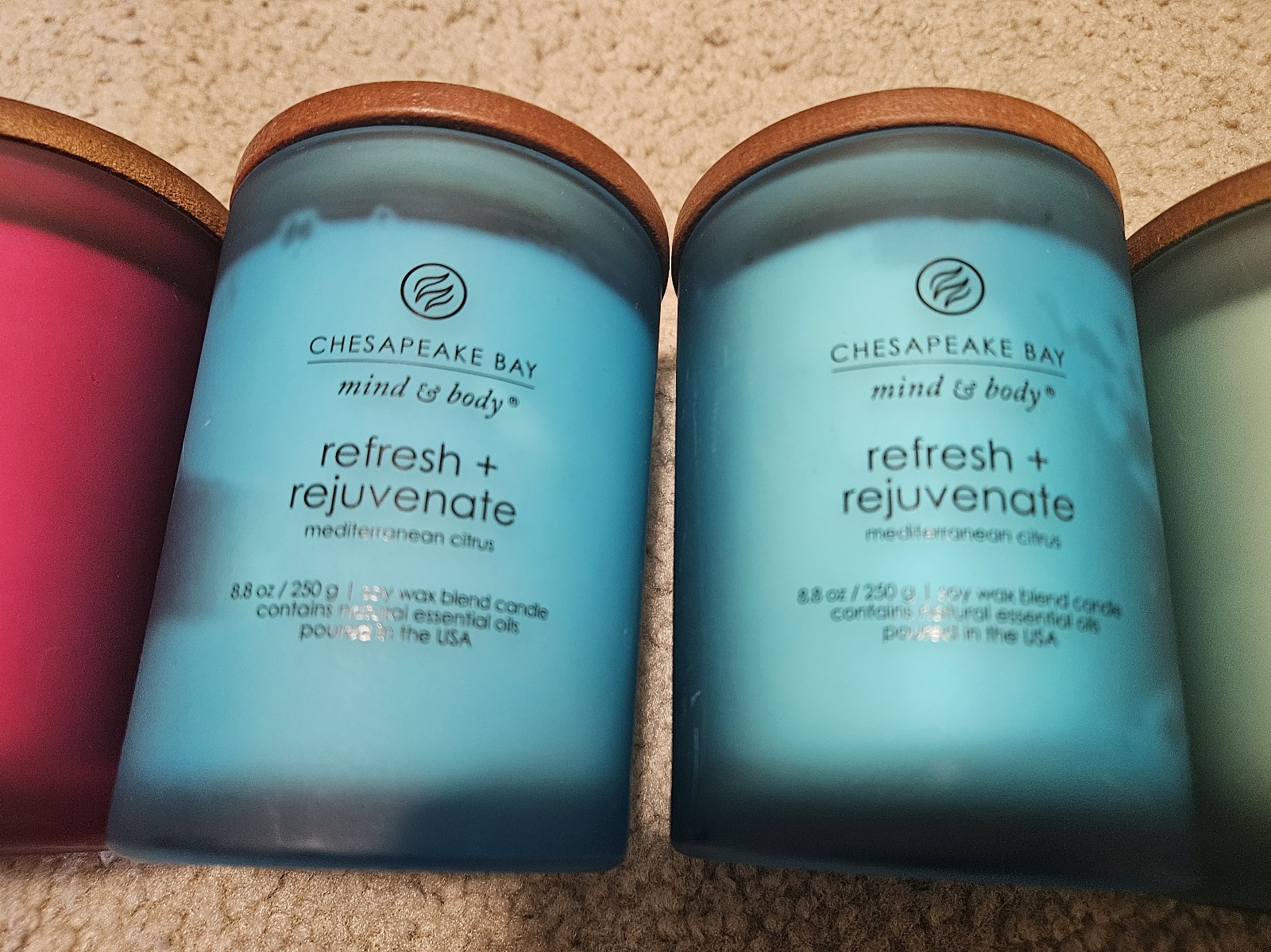 4 Chesapeake Bay Mind & Body Candles Citrus Coconut Pear New Nevee Burned. Candles are new and never burned. Shipped with USPS ground advantage.