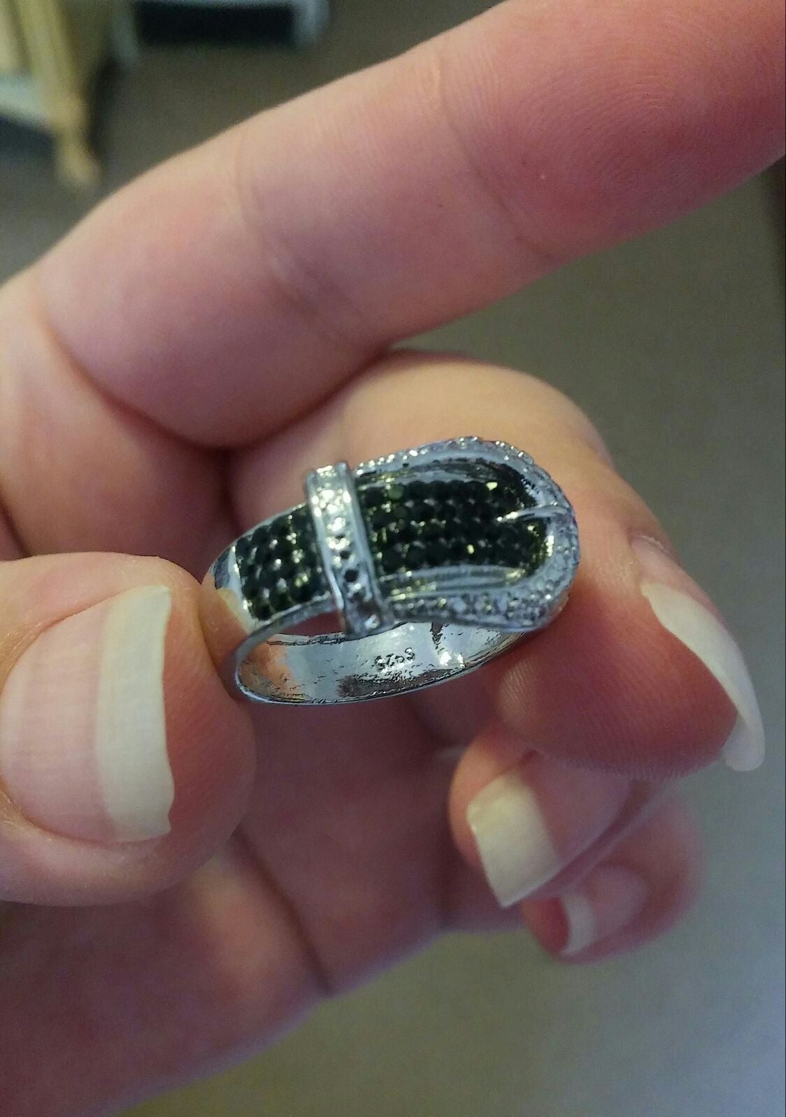 Sterling silver thick ring with a buckle style design set with gorgeous black onyx stones and white sapphires (that look just like diamonds!)
