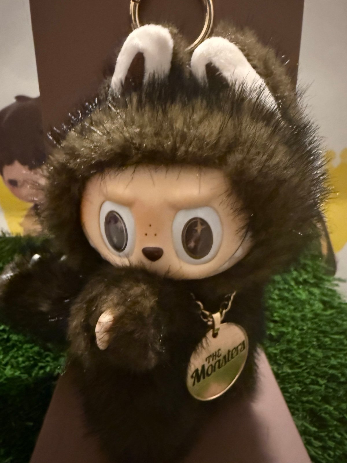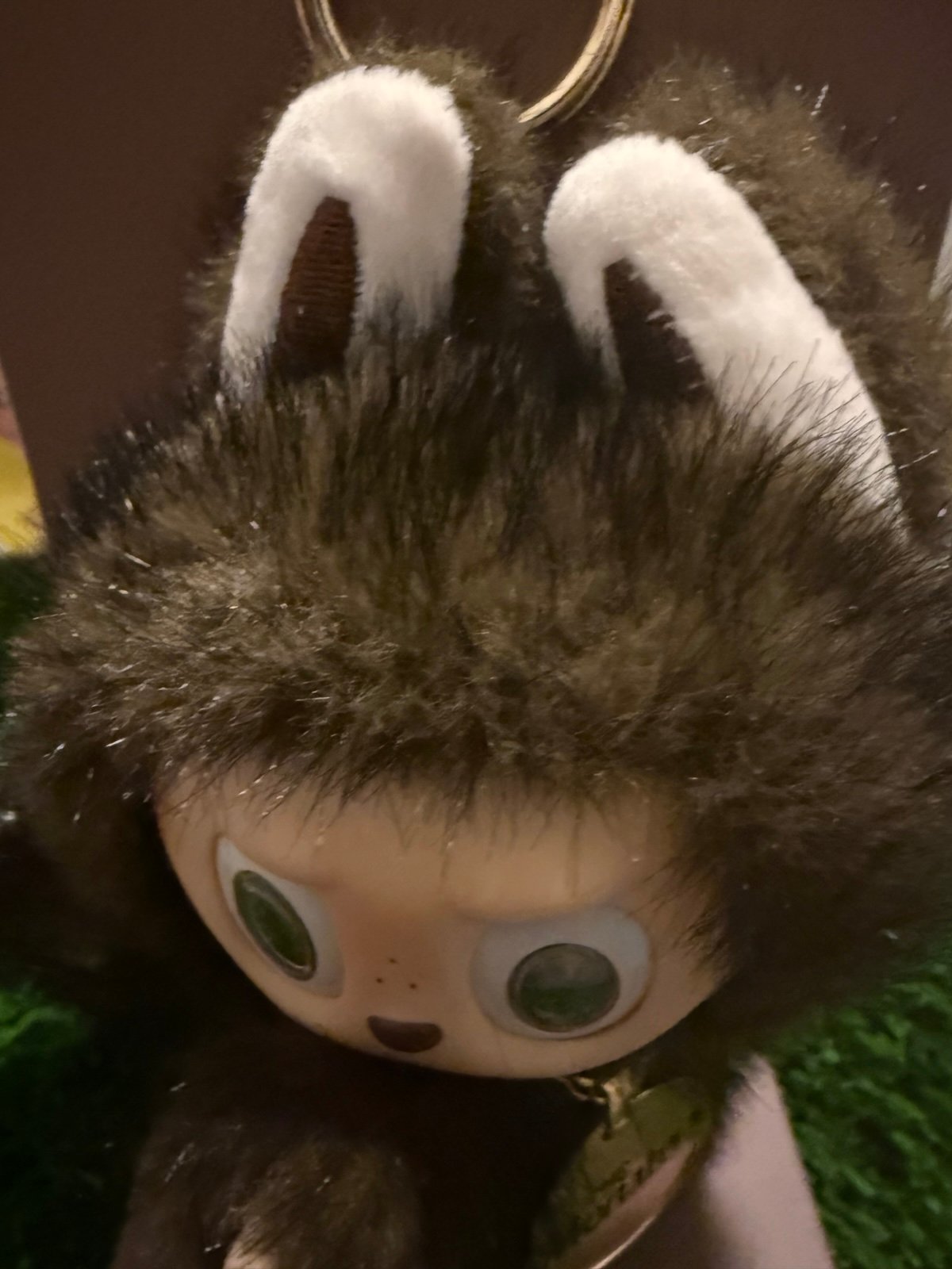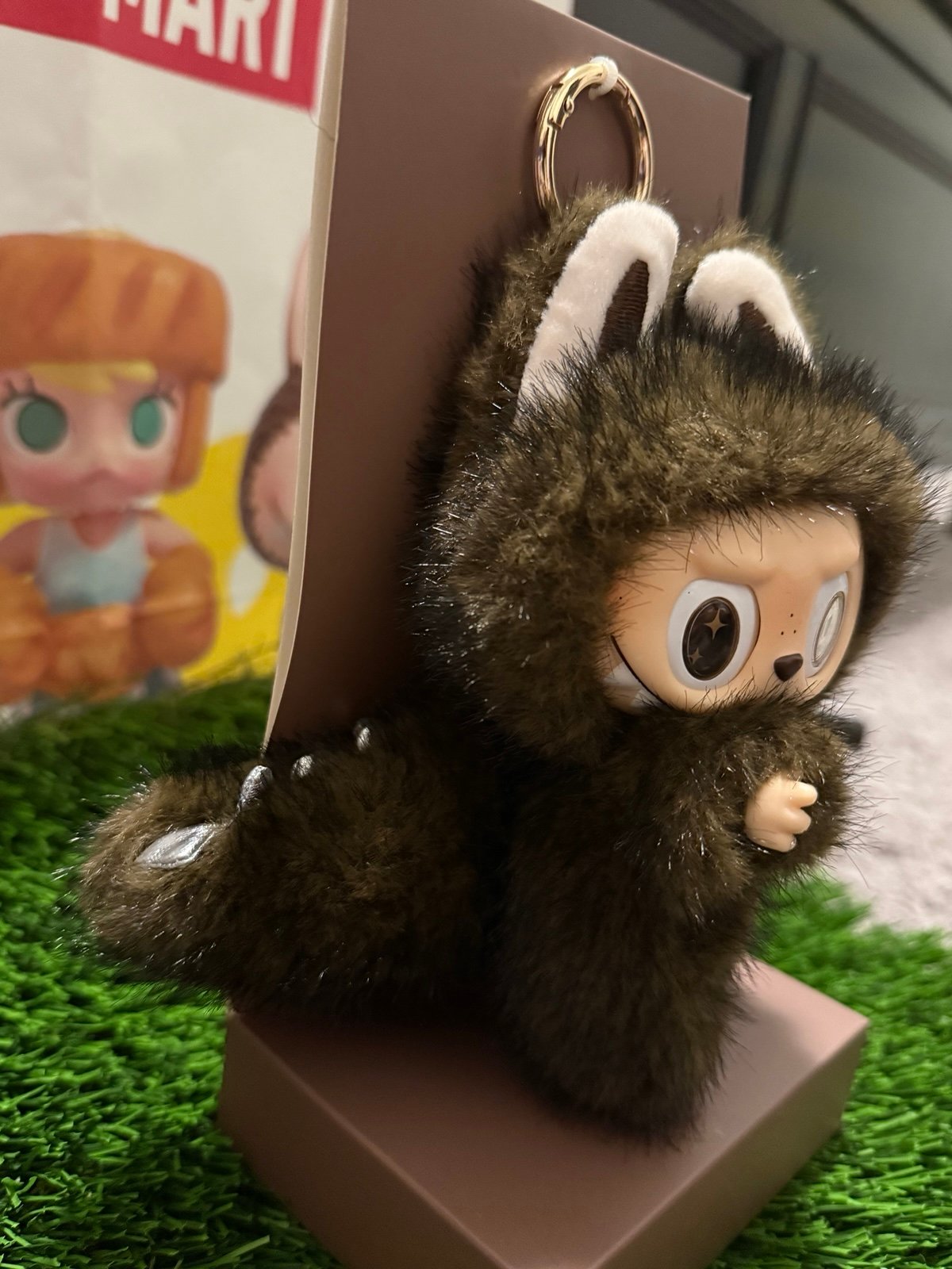 This is not an official Pop Mart Labubu. It’s a custom design! So cute that I had to have one. This is version 2 of this custom design with updated fur. His tail is poseable, so he can stand up.