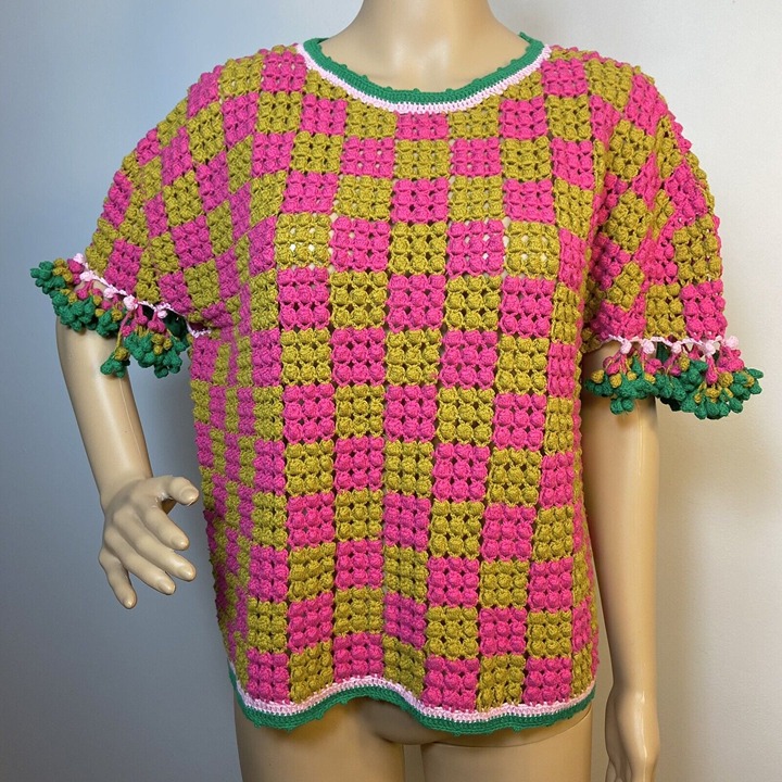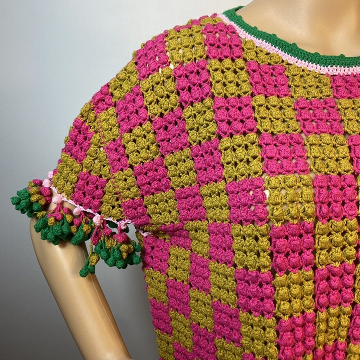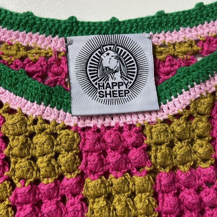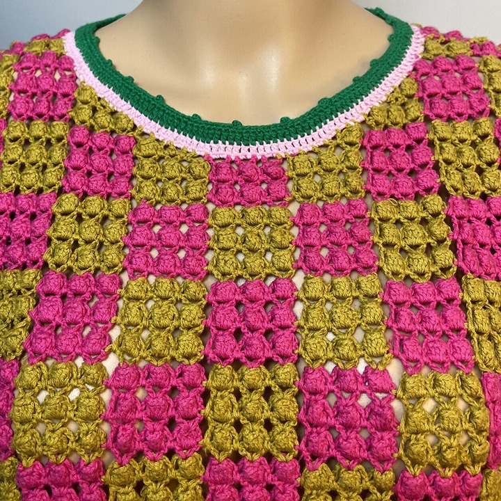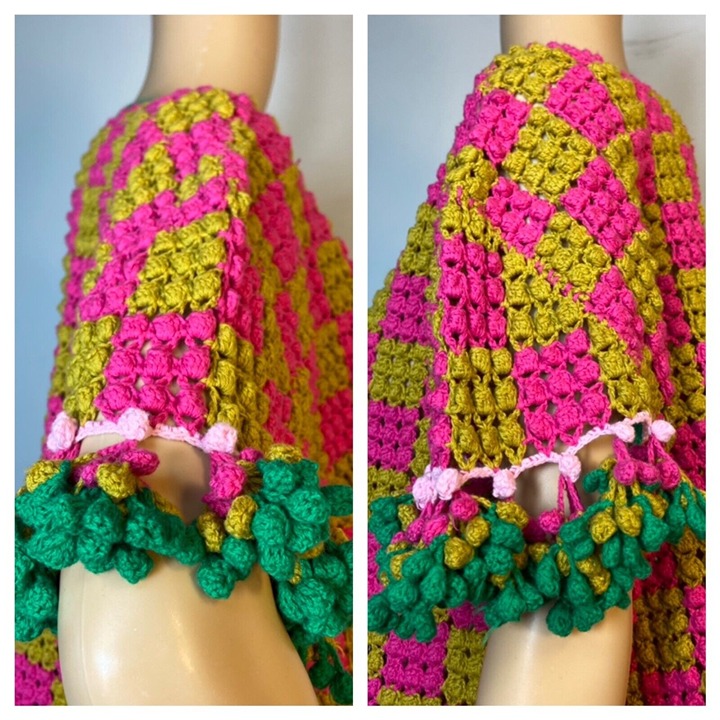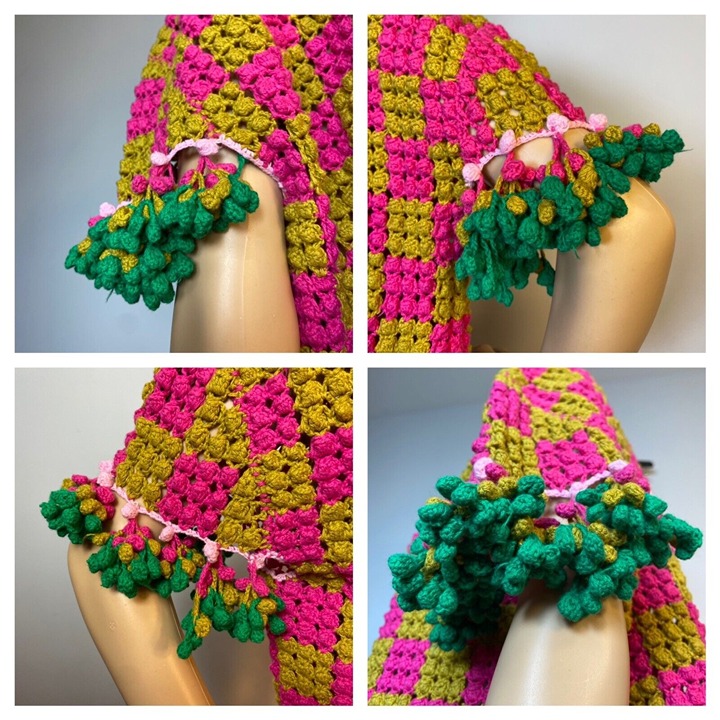 Dijon mustard yellow & hot pink pom pom squares w/ shamrock green & baby pink trim