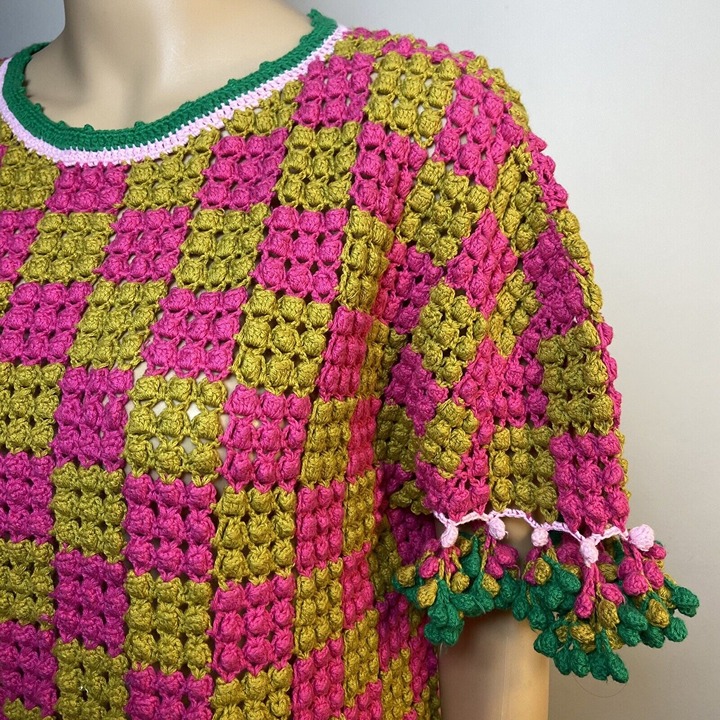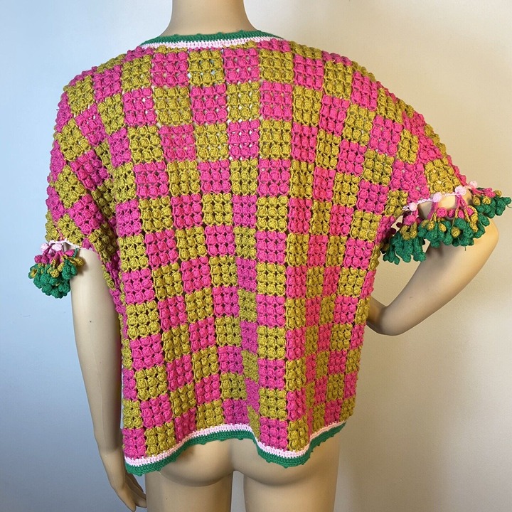 Condition: A few tiny loose threads at back of right shoulder. Several tiny loose threads on pom poms. See photos!