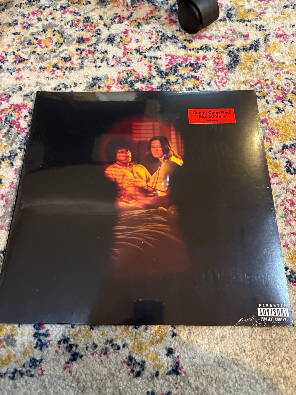 Selena Gomez And Benny Blanco I Said I Love You First Candy Cane Red Signed Vinyl Record with SIGNED insert.