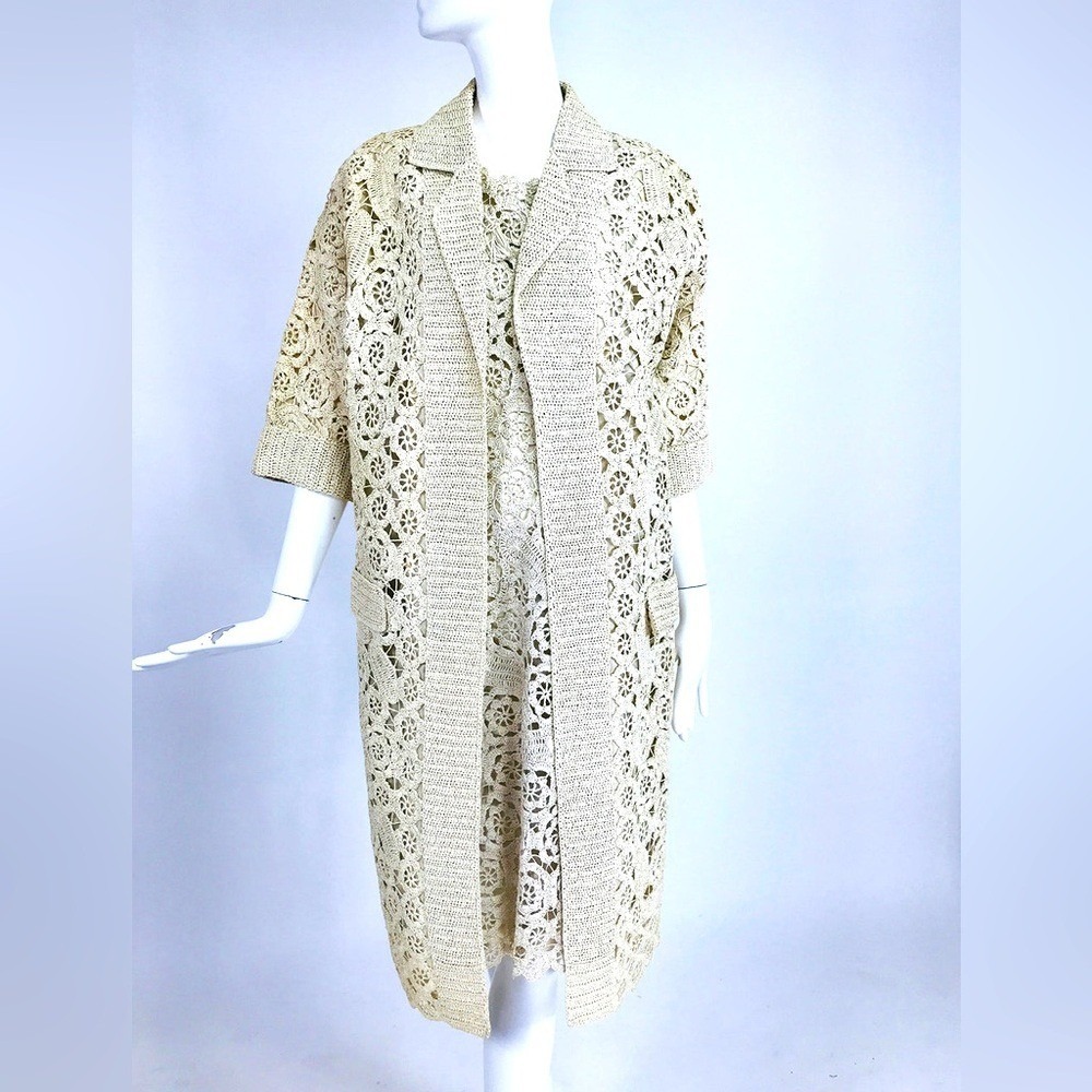 Creazioni Paoli of Firenze swing coat and sheath dress set of cream crocheted raffia from the