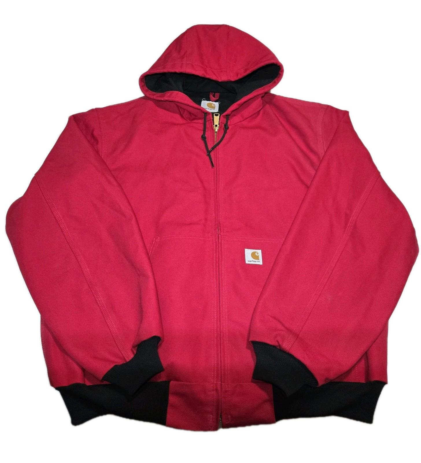 Vintage Carhartt Canvas Hooded Jacket Red Workwear Early 2000s EUC